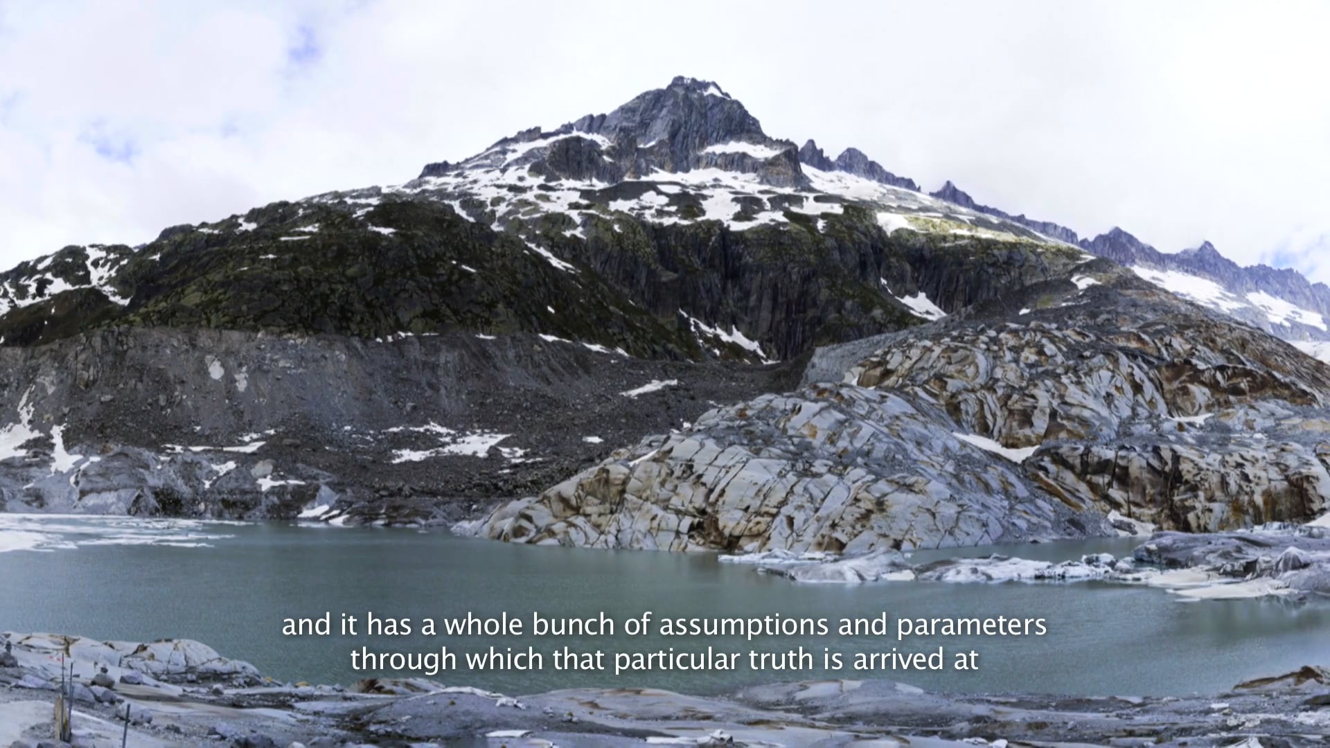 In former times, glacial landscapes were places of local culture and mythological relationships, which also held memories of explorers and travellers. In the eighteenth century the universal scientific term “glacier” was coined for bodies of moving ice. Today our scientific “knowledge” is still limited, even as they disappear in the climate crisis. The research work is presented within sight of the waterfall, above which the last piece of glacier in the Safiental valley still rests, preserved under a cone of rubble. (JH)